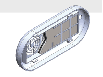 A recirkulátor háza ütésálló és kémiailag ellenálló műanyagból készül, ami lehetővé teszi az eszköz hatékony tisztítását mosó- és fertőtlenítőszerekkel is.